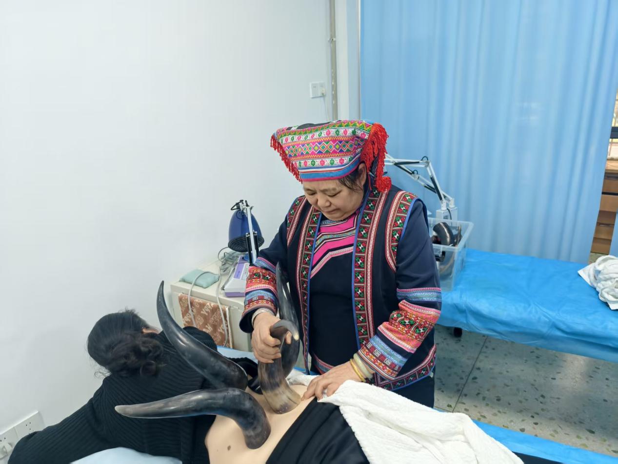 江华瑶族自治县民族中医医院派出6名骨干中(瑶)医专家团队,为师生提供免费义诊,针对颈肩腰腿痛、失眠、亚健康等常见问题,现场施诊瑶医抓火疗法、瑶药推拿疗法、瑶医火攻疗法、瑶医针灸疗法,并结合个体体质开具个性化中(瑶)医药方。“平时工作忙没时间跑医院,没想到校园里就能体验这么专业的瑶医服务!”刚结束治疗的李老师轻揉肩膀,难掩笑意,“现在脖子轻松多了,医生还教了我秋冬祛湿小妙招,特别实用!”